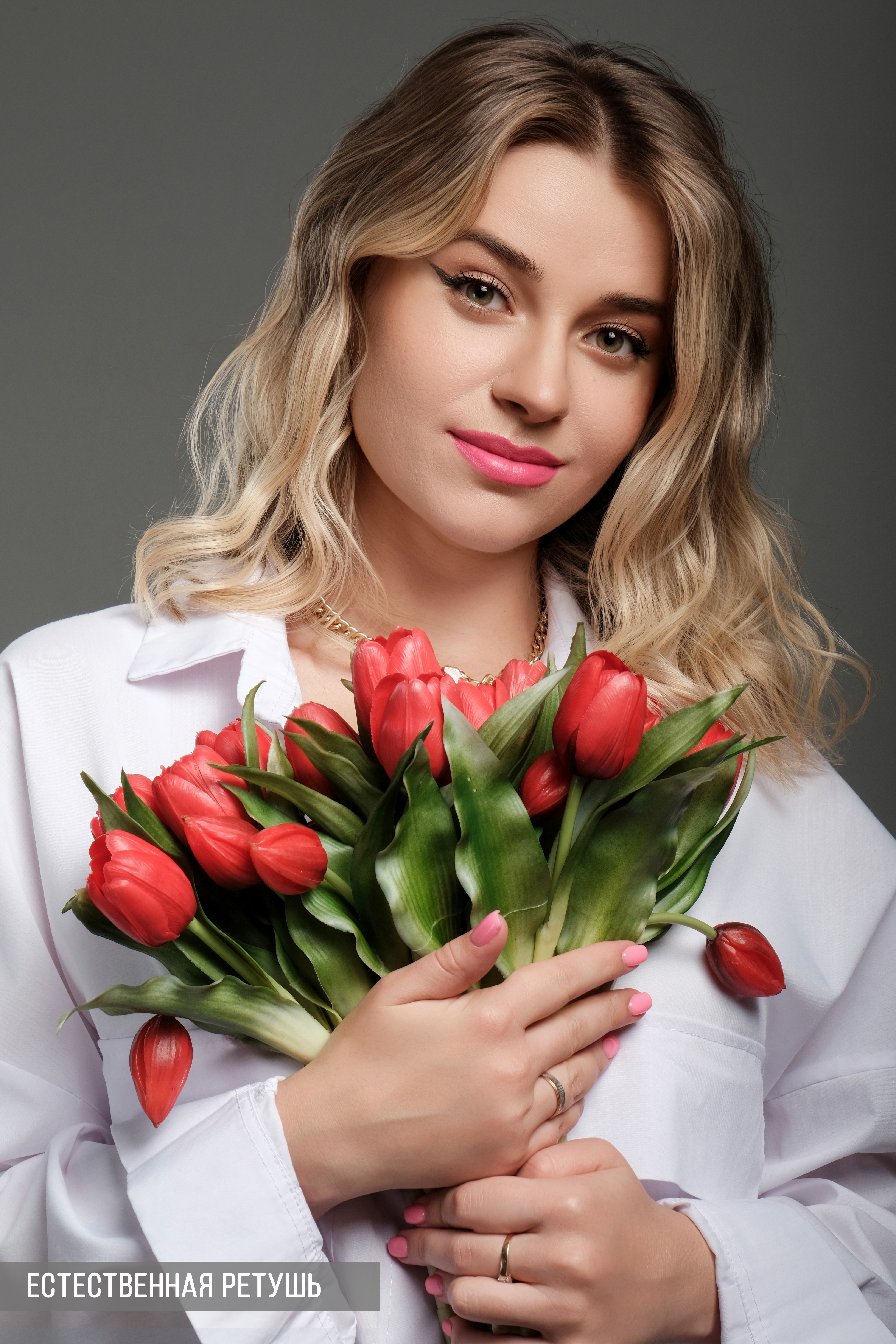 Маскируются крупные несовершенства кожи; приглушаются морщинки; чистится однотонный фон; осветляются зубы; добавляется резкость-контраст и производится свето-коррекция.